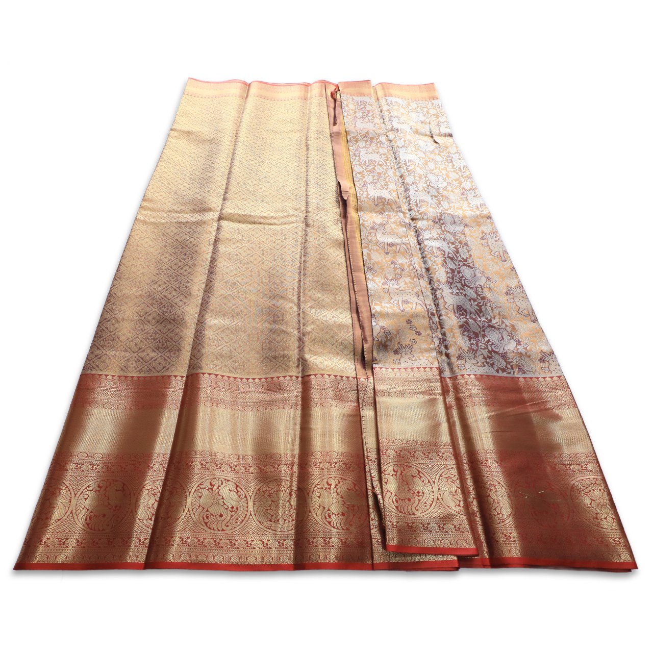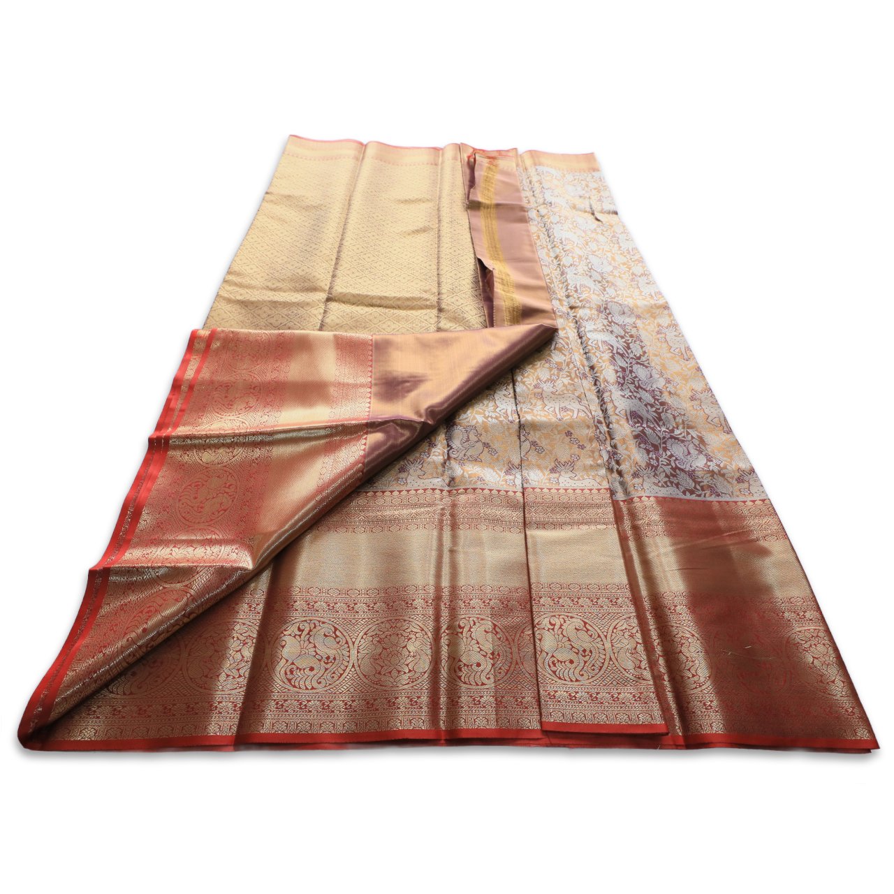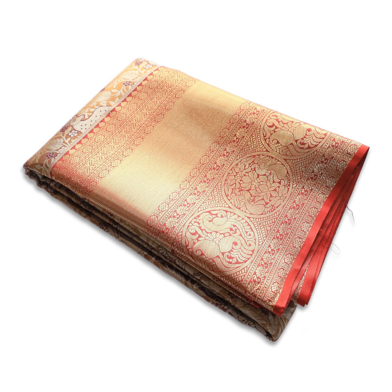 | Color | Golden Brown with Rustic Orange Border and Gold Zari Pallu |