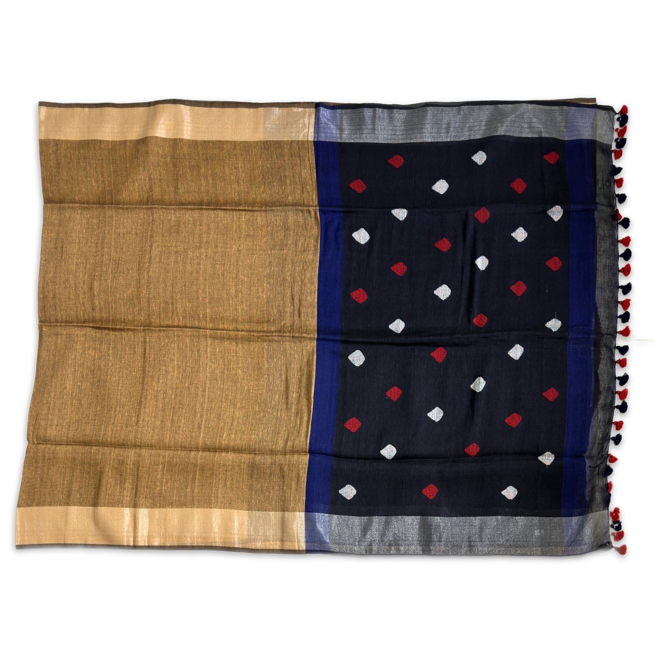 | Pallu Style | Diamond Design Self-weave Motif with Tassels |