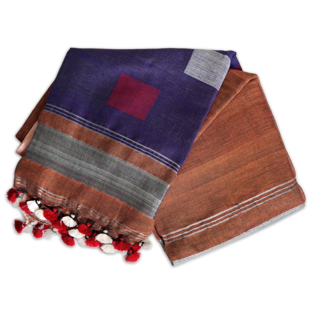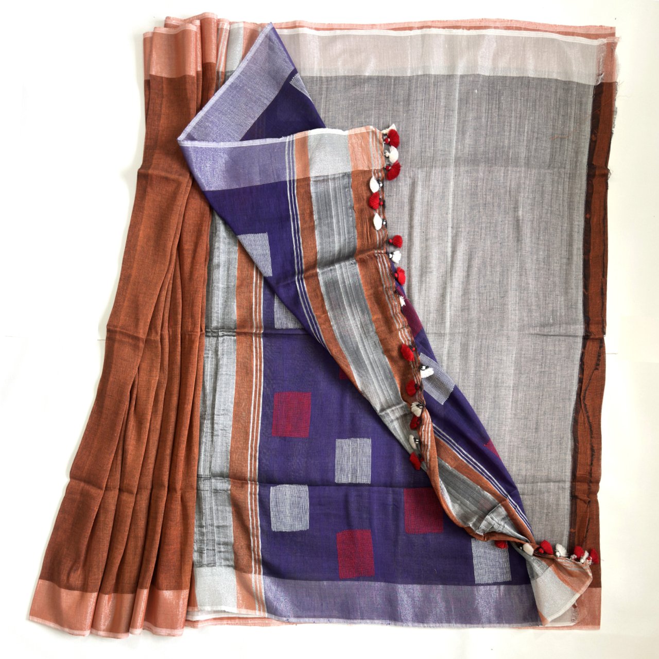 | Color | Antique Copper Saree with Purple Bluish Pallu |