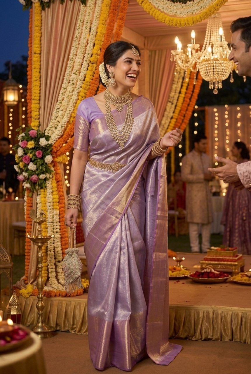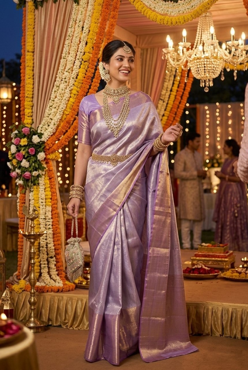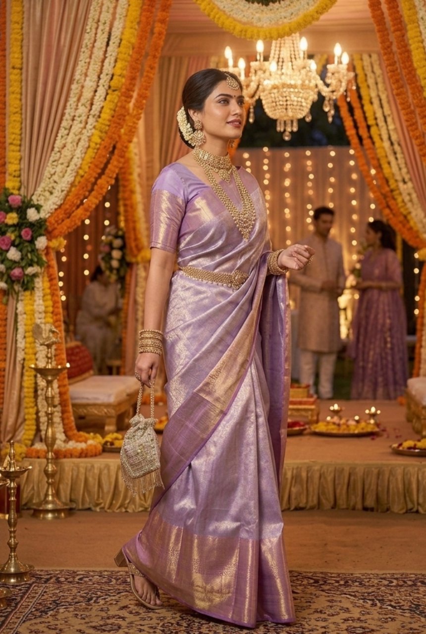 | Color | Lavender with Gold Zari |