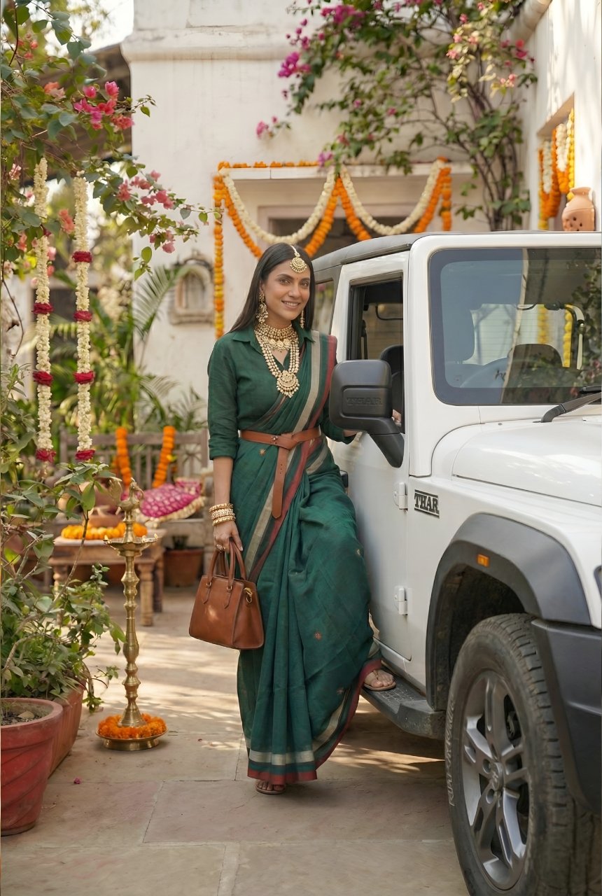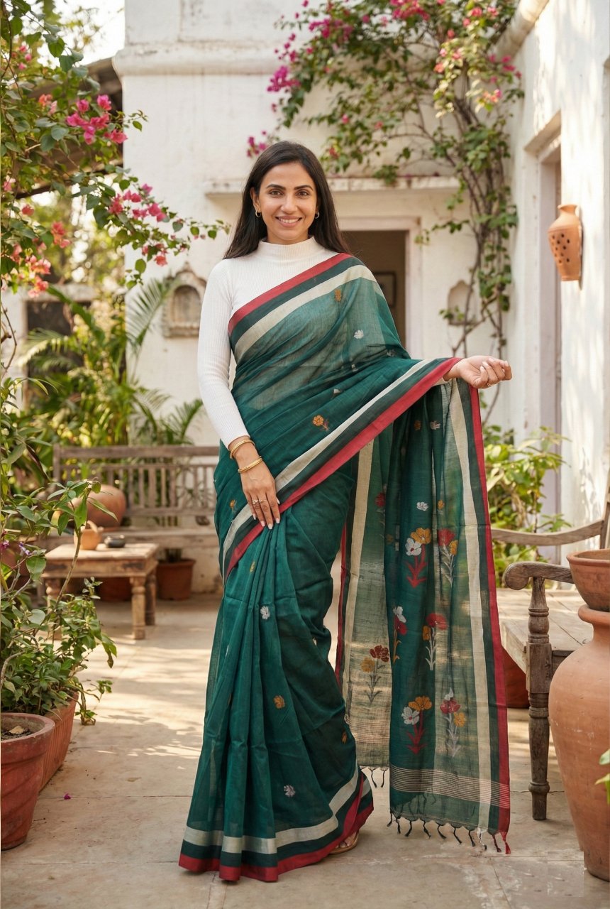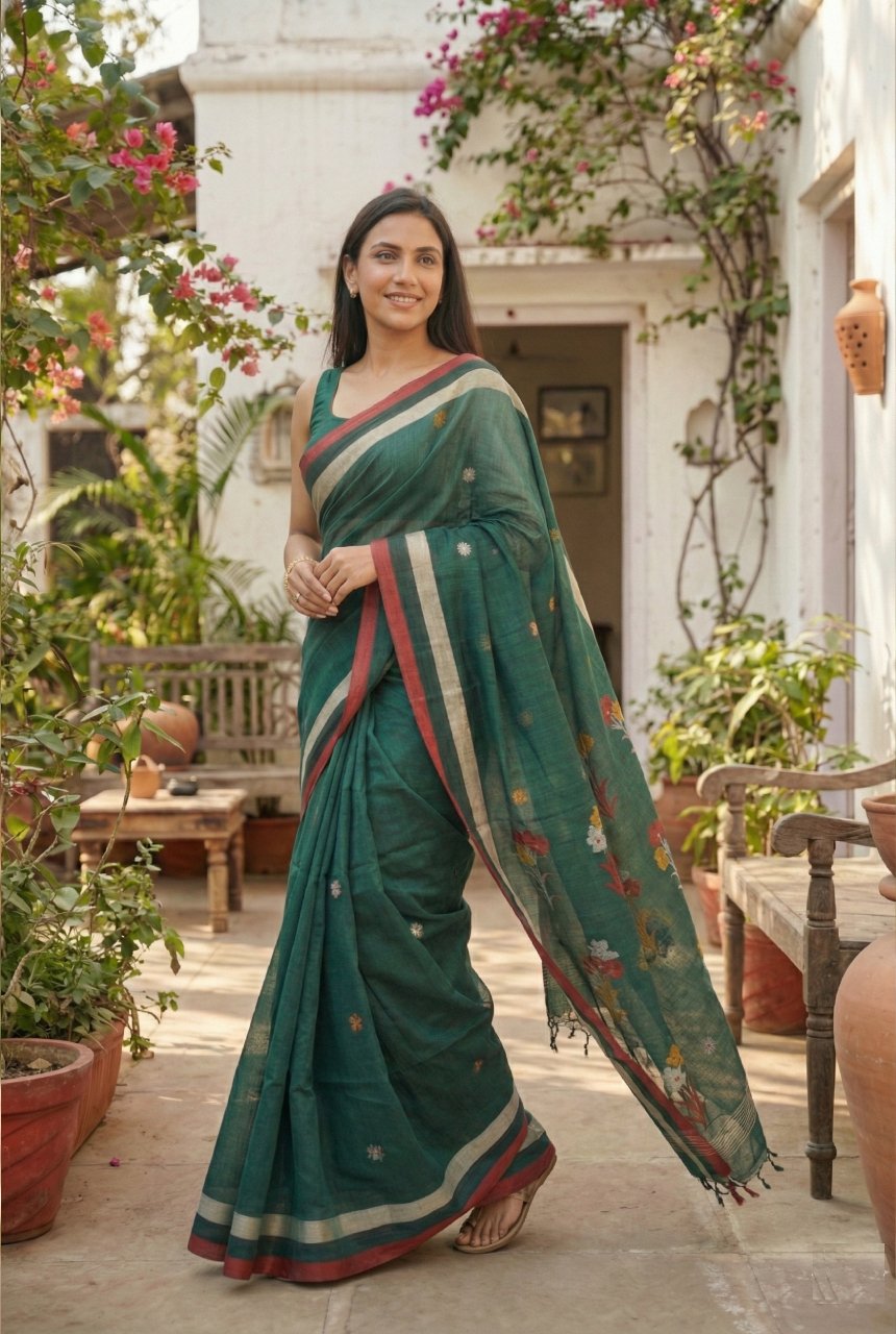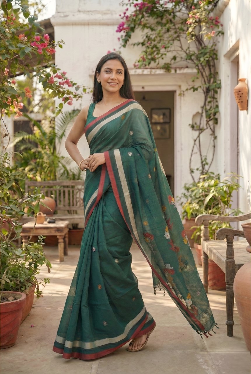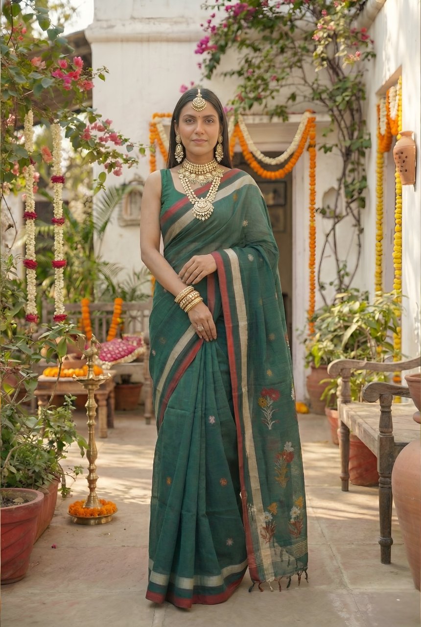Dark Green Soft Cotton Saree