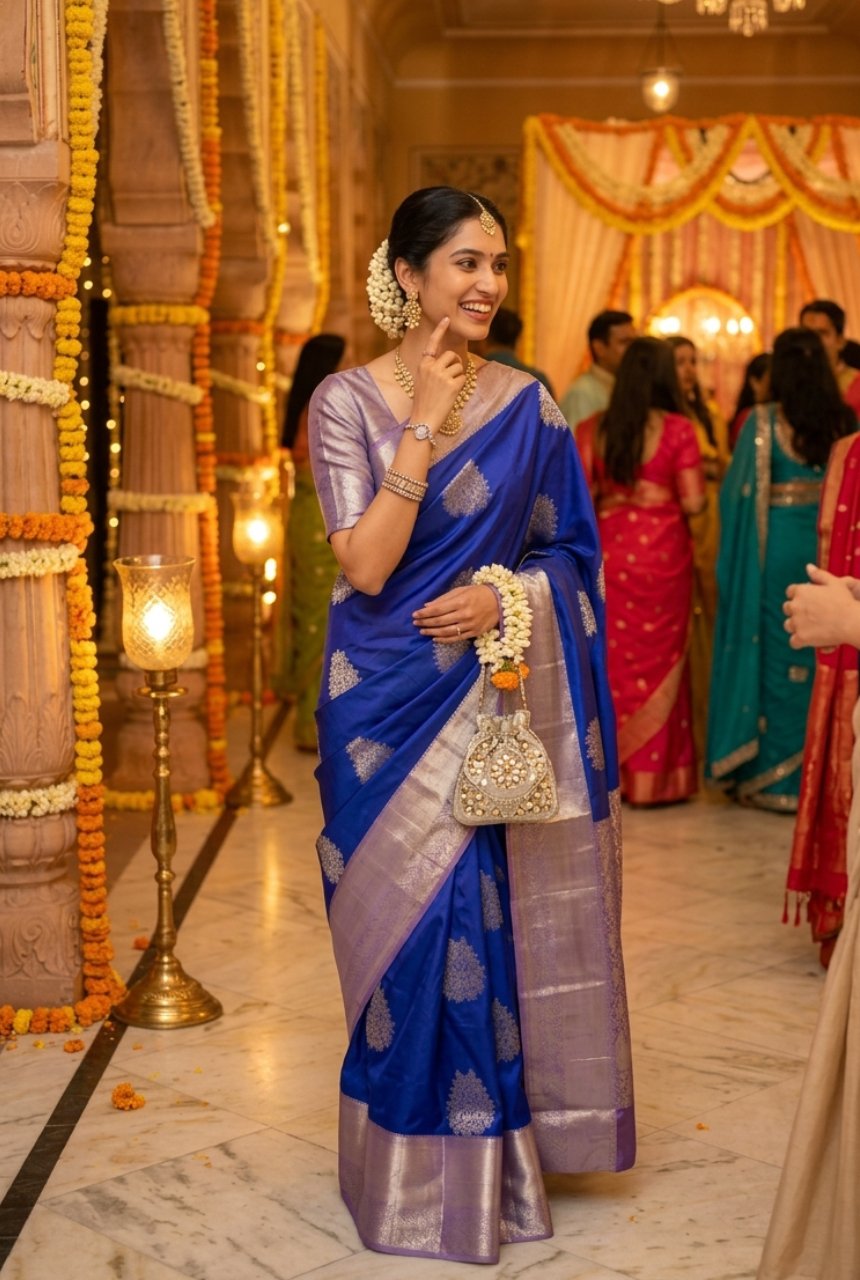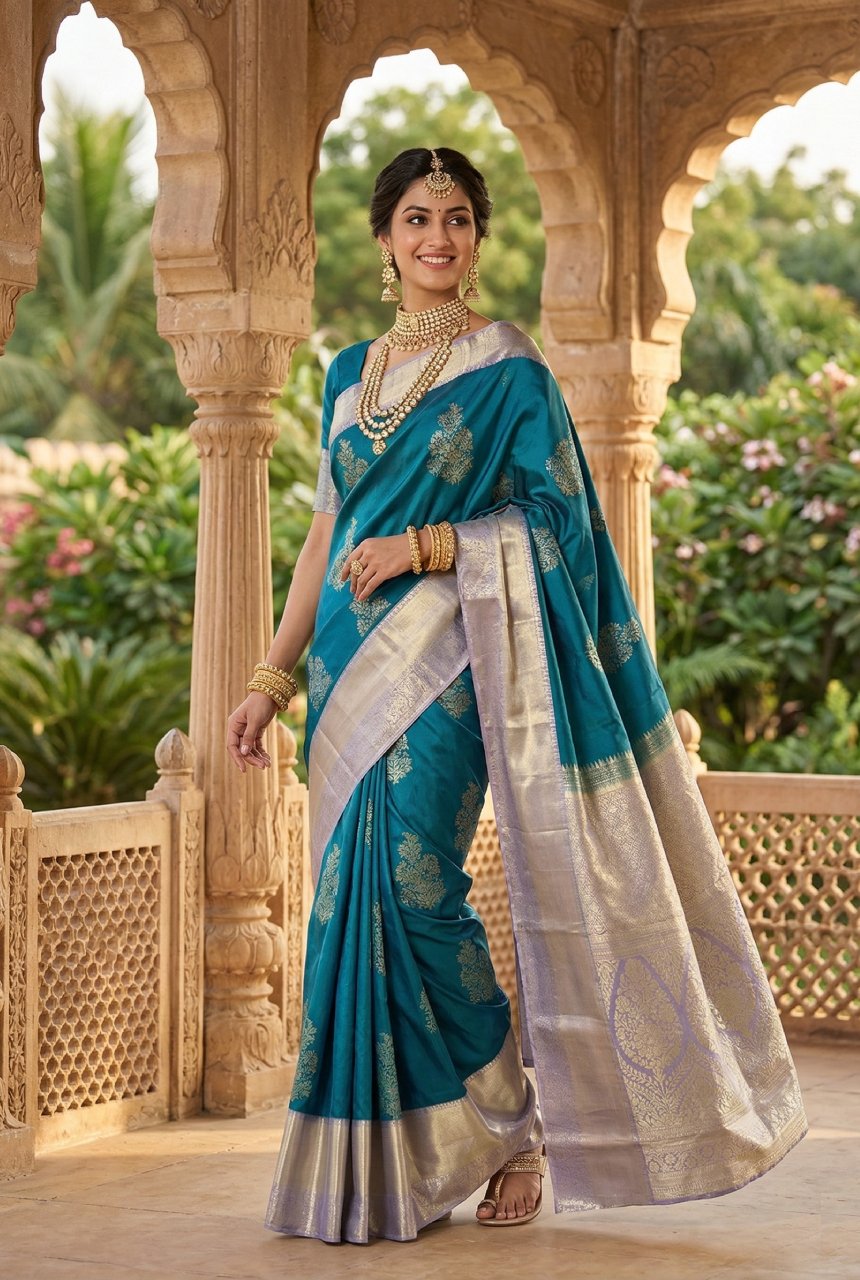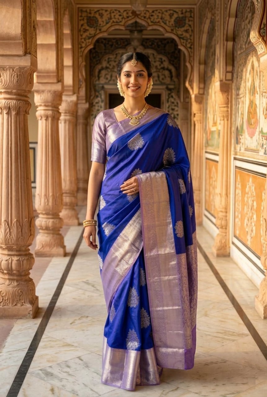 Roal Blue Motifs Saree