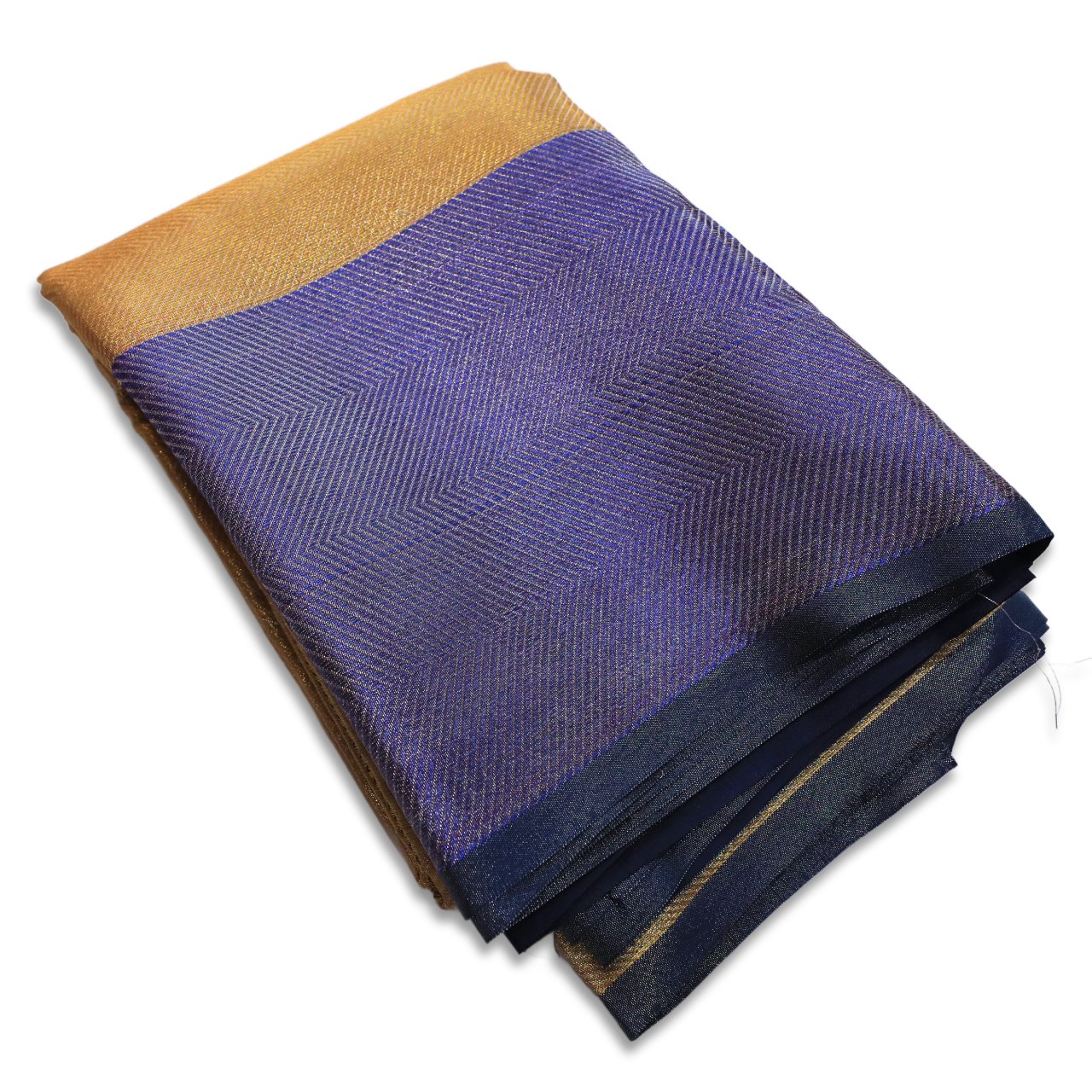 Elegance in every thread, formal or party wear it’s a center of attraction saree. A craftsmen masterpiece, elegant color combination with slanting line weaving pattern which is very intricate yet finest to utmost level. It’s a broad border saree in golden gentle sheen body and a vibrant blue border with a beautiful and comfortable fall. Weaving is so intricate that there an art in every thread.