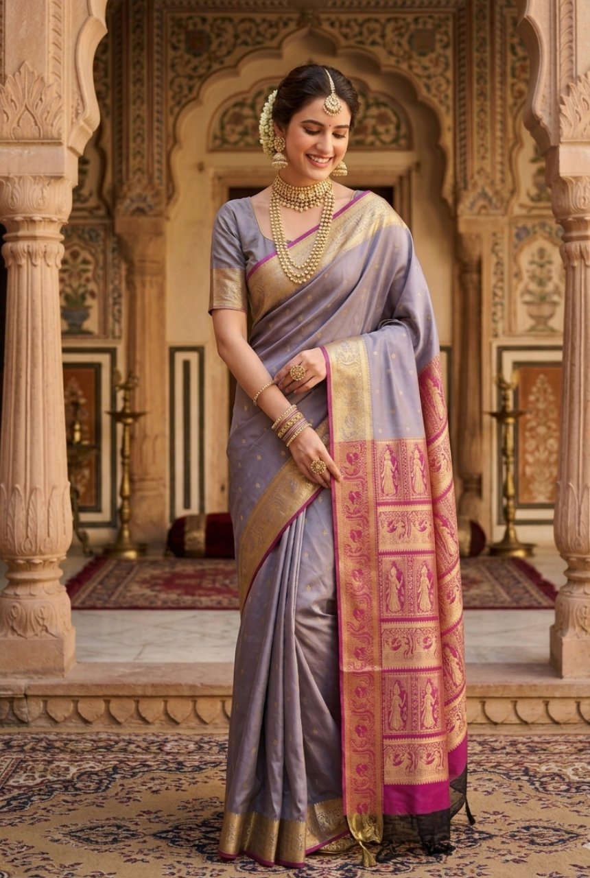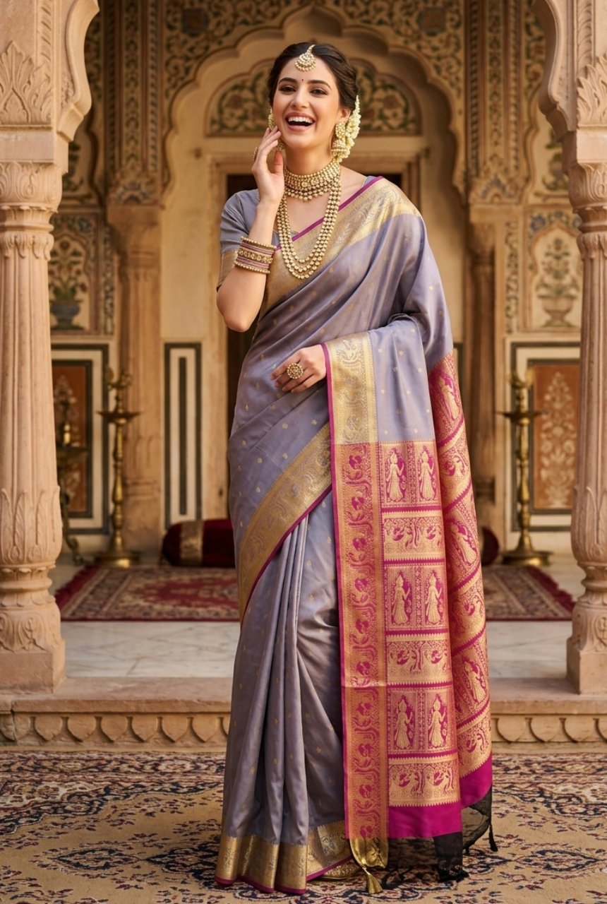 | Color | Dove Grey with Cimson Brocade Pallu |