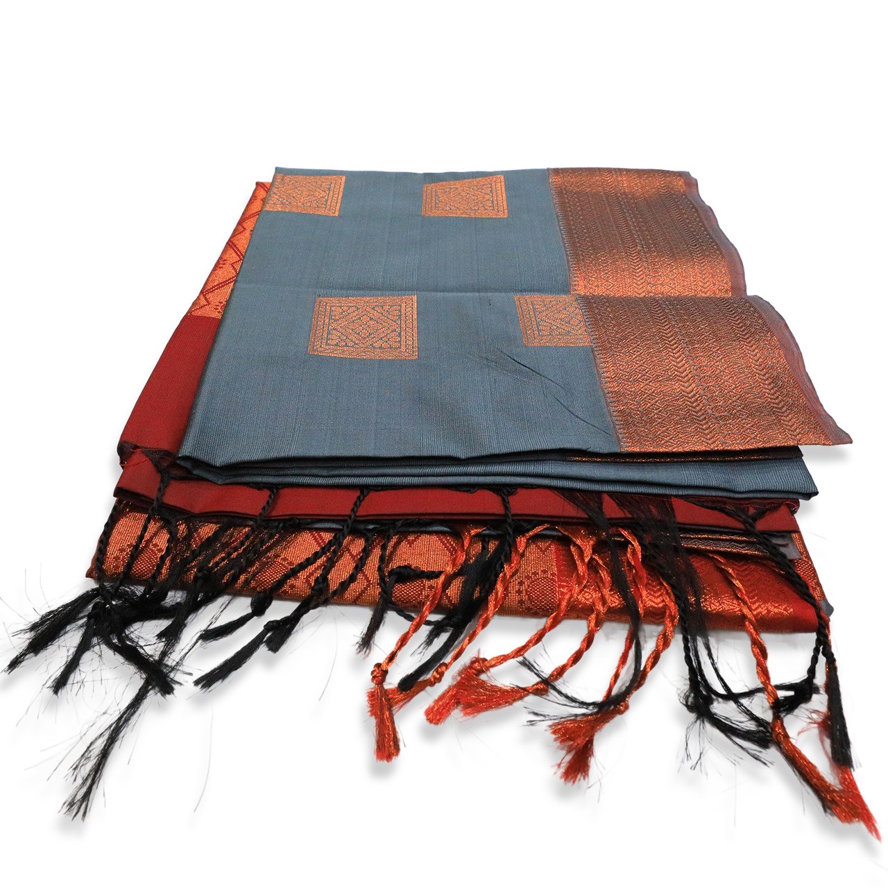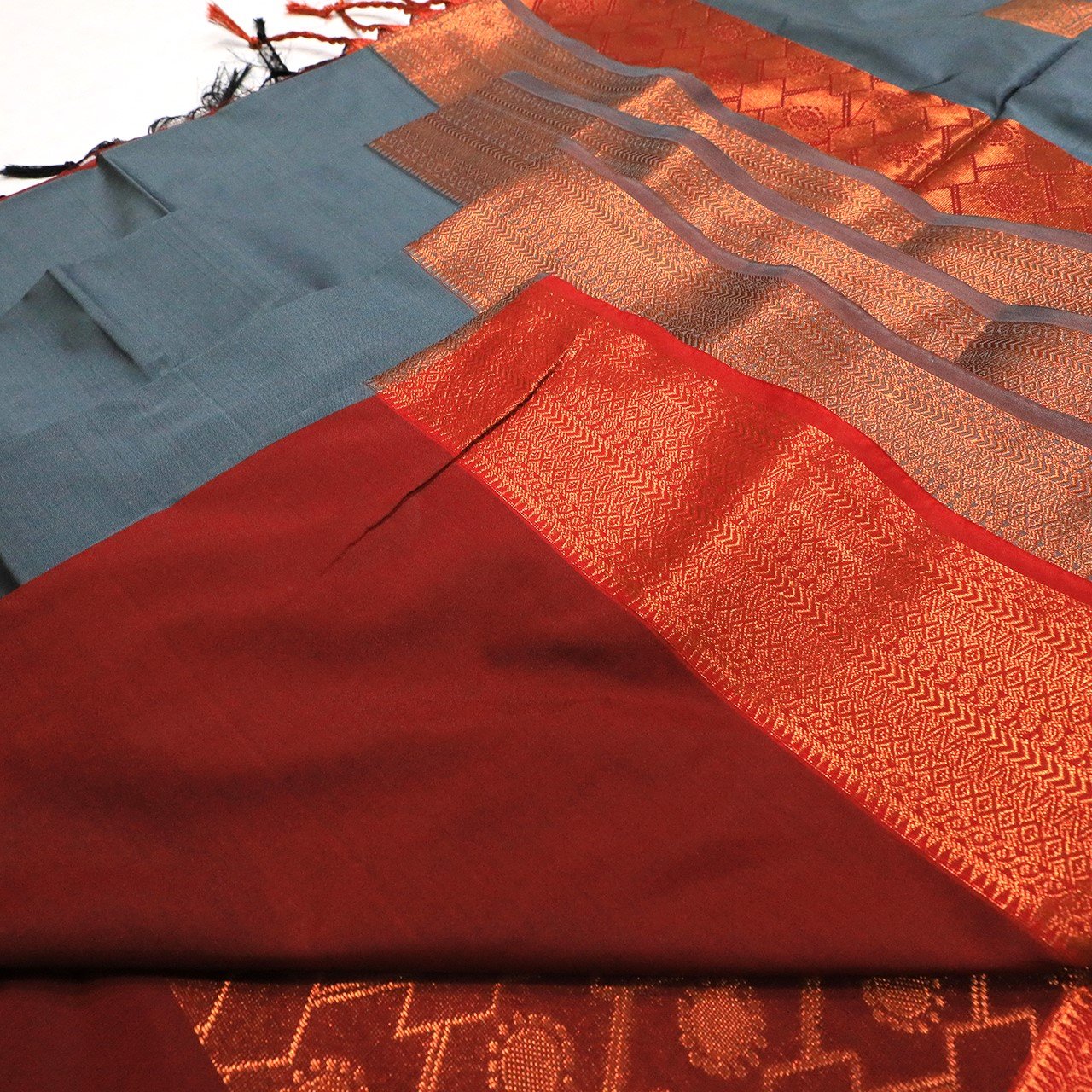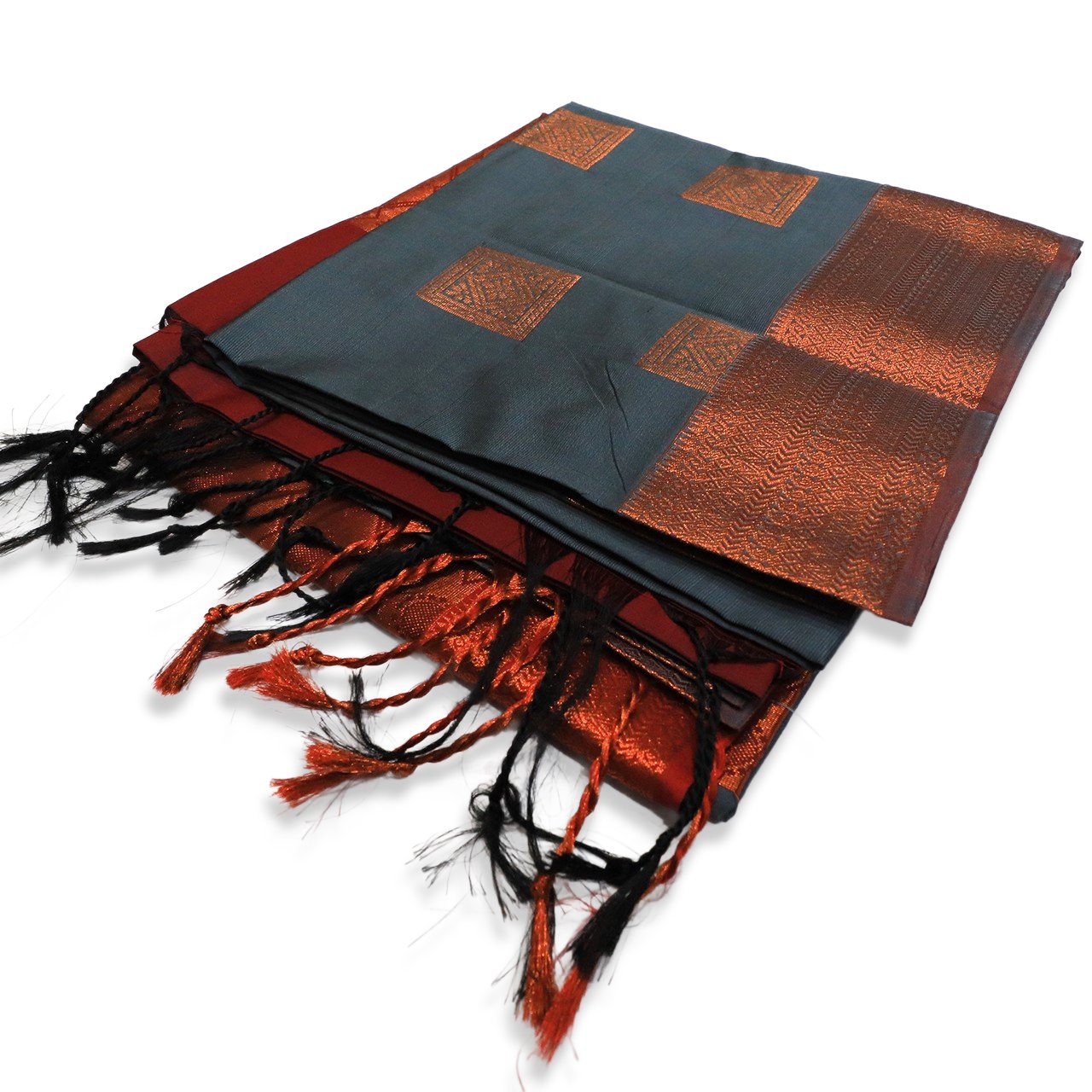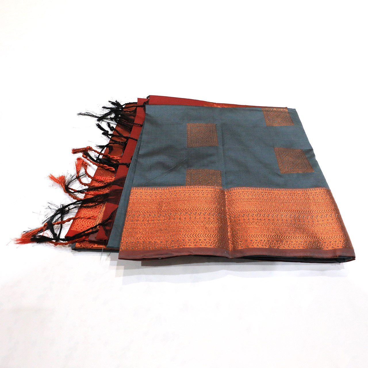 Slate Grey and Brick Red Pallu