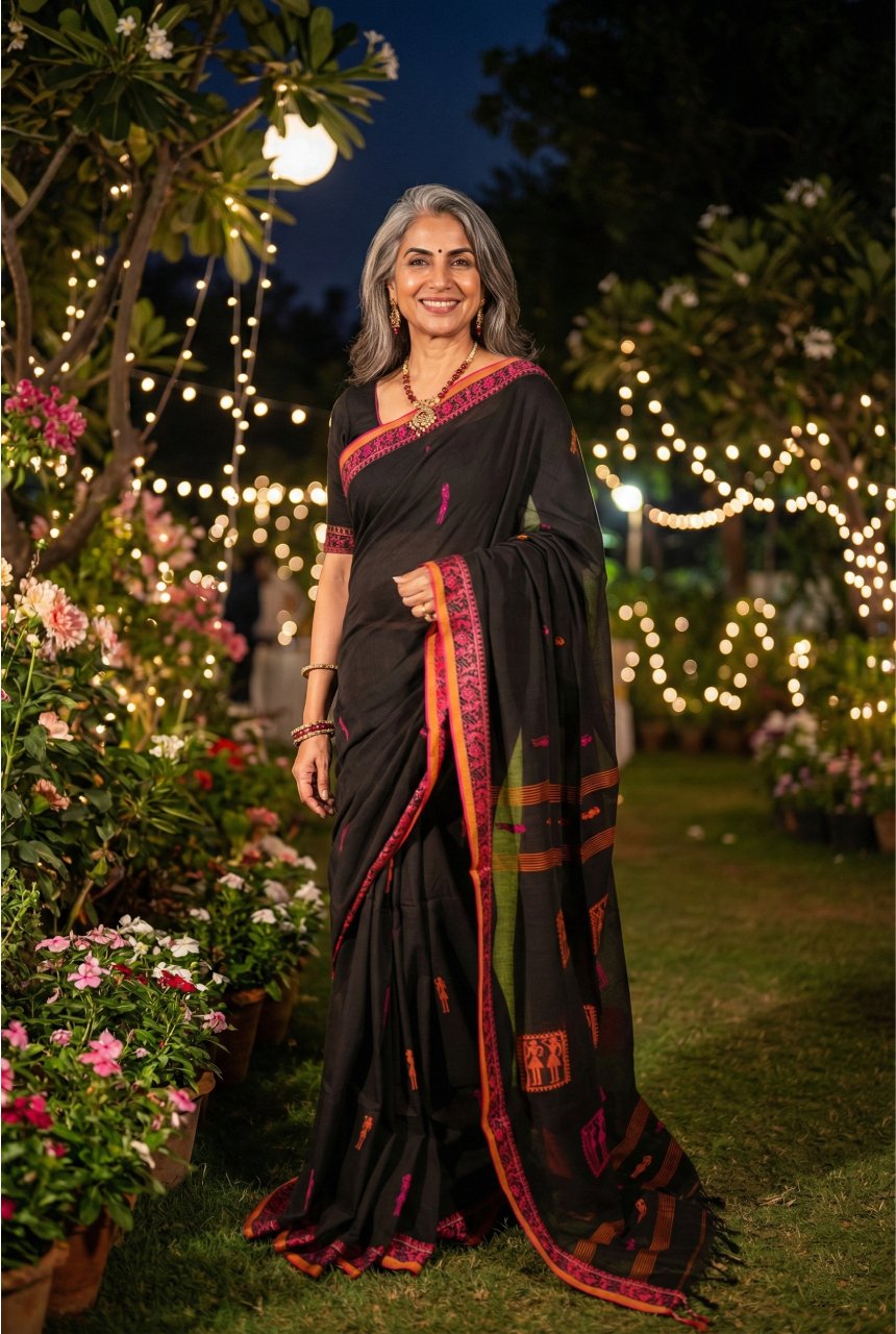 Warli Art Black Soft Cotton Saree
